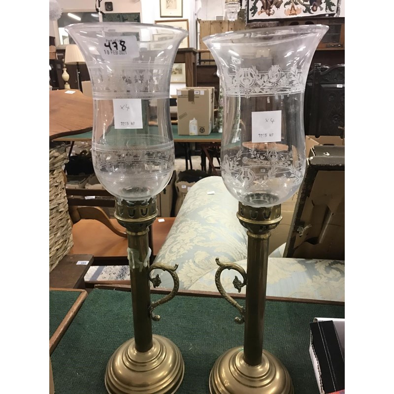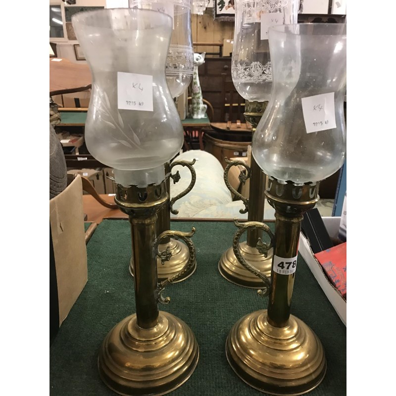 Four Handled Brass Lamps with Glass Shades