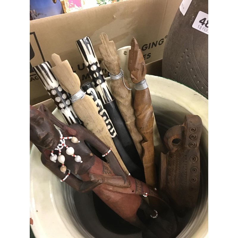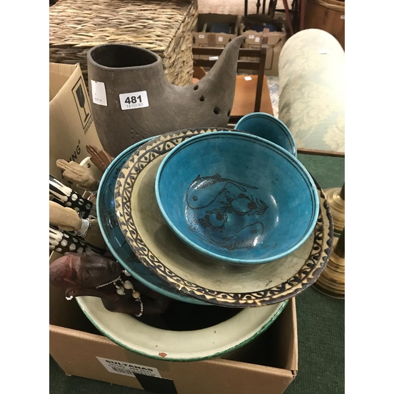 Wooden Tribal Style Items, Turquoise Chalices and Bowls, etc