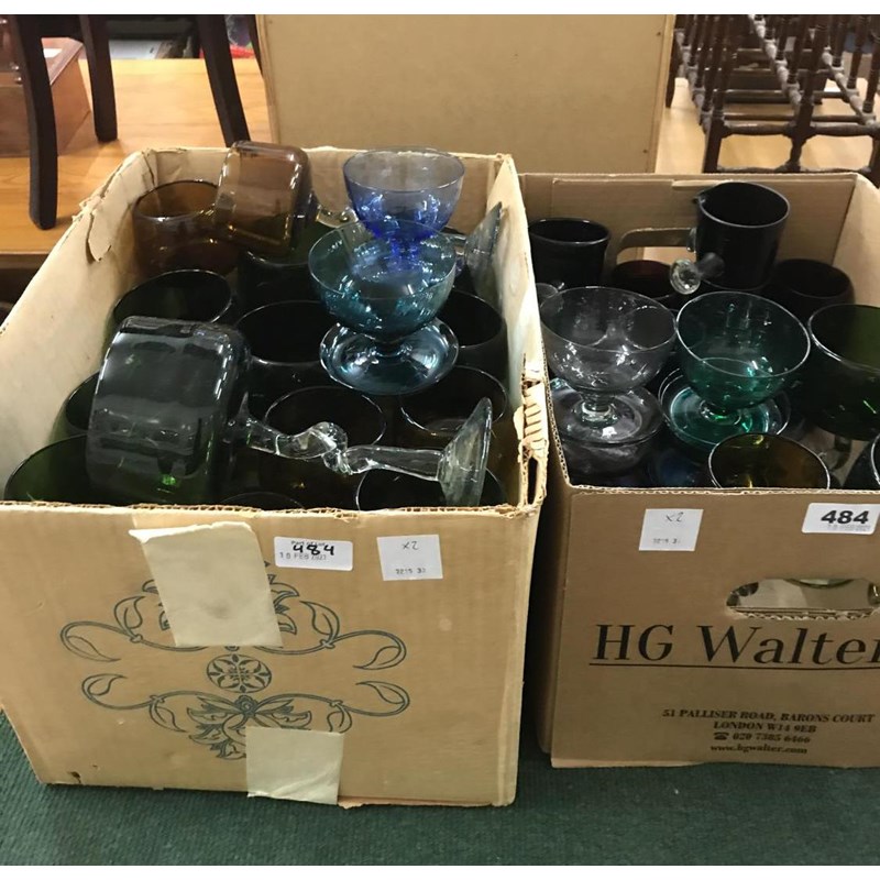 Two Boxes Containing a Large Quantity of Coloured Glass