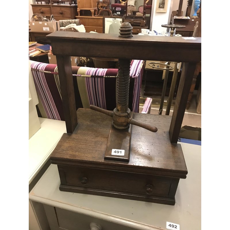 Oak Printing Press with Single Drawers