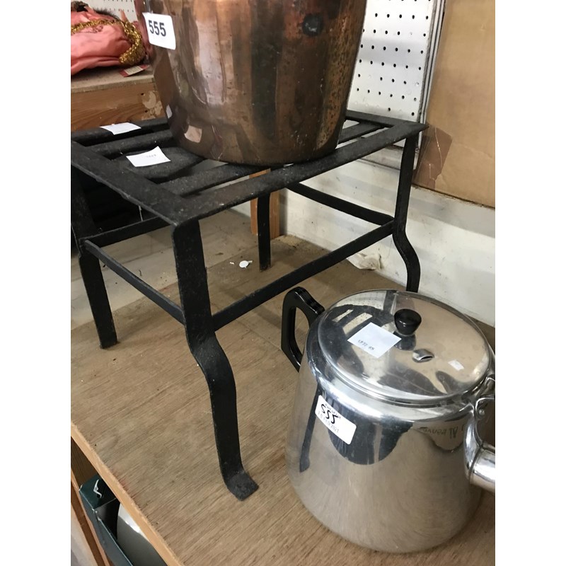Iron Stand, Copper Kettle and Another Stainless Steel Kettle