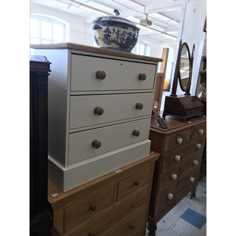 Pine Painted Chest of Long Three Drawers, H74cm, L76cm, D40cm