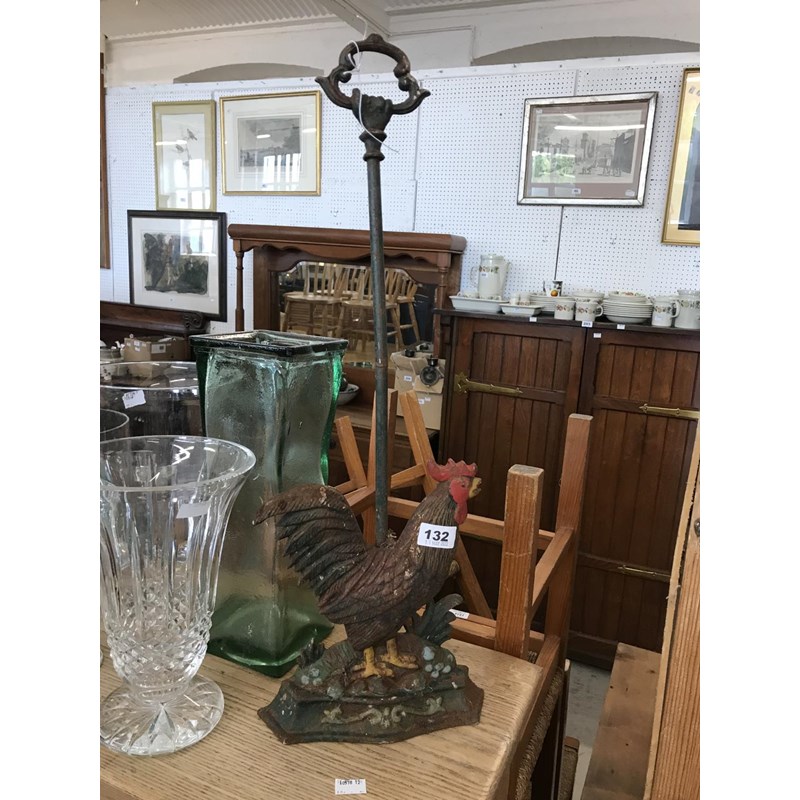 Cast Iron Original Paint Doorstop of Chicken, Height 63cm