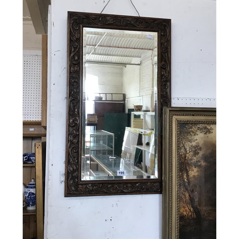 Oak Carved Framed Mirror, Bevelled Edge, Height 78cm, Length 47cm