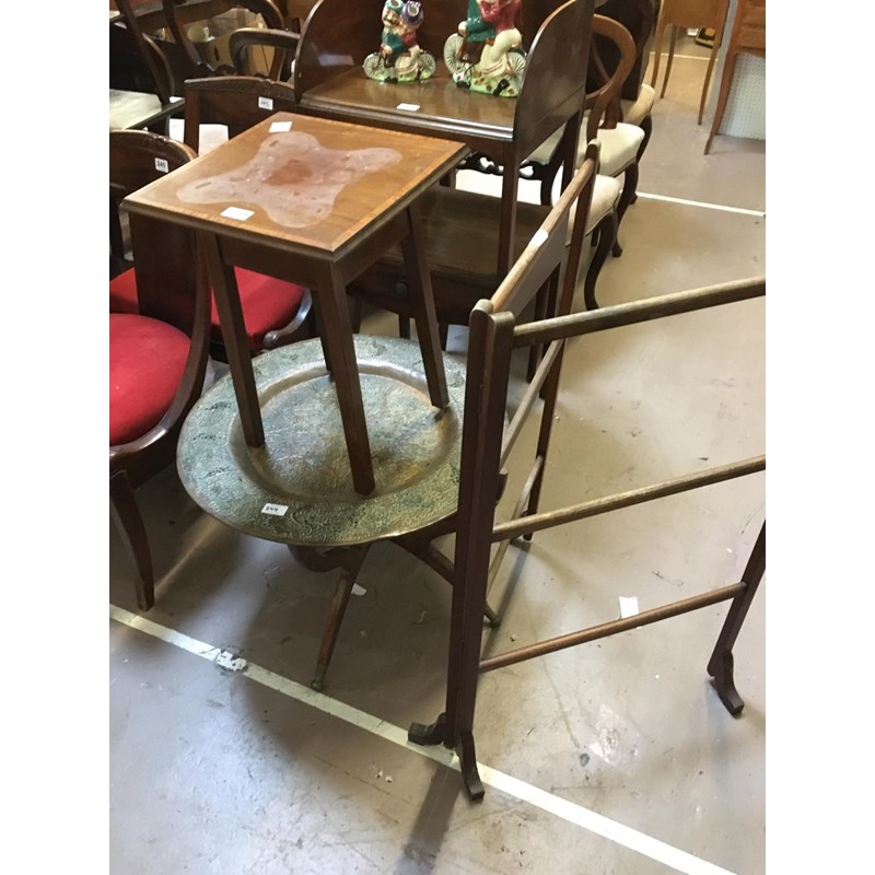 Copper Tray Top Table, Towel Rail and Small Inlaid Table