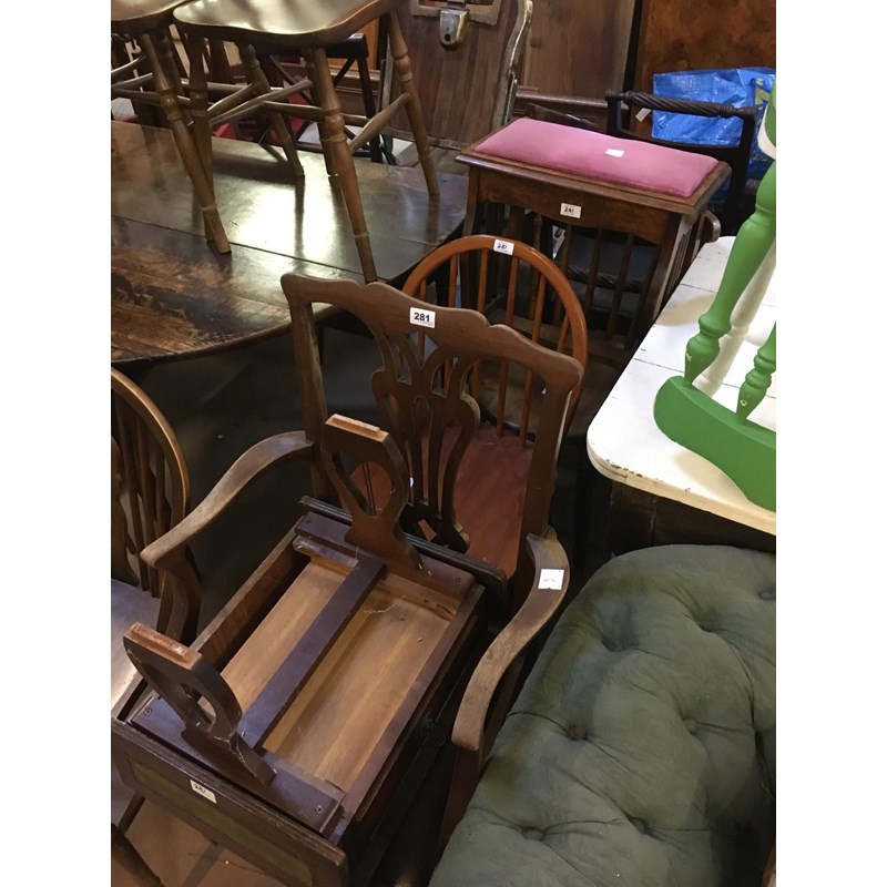 Three Chairs and a Small Table and Piano Stool