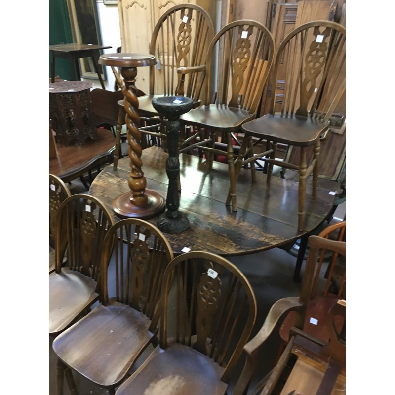 Gateleg Dining Table and Seven Wheelback Chairs