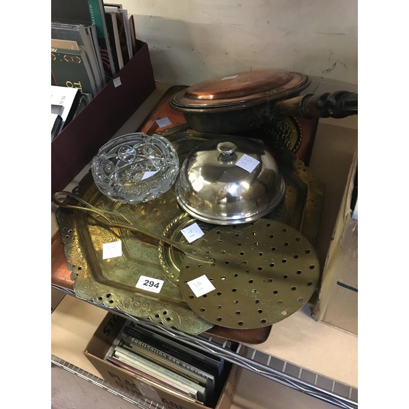 Copper and Brassware (Warming Pan, Trays) and a Dish Cover