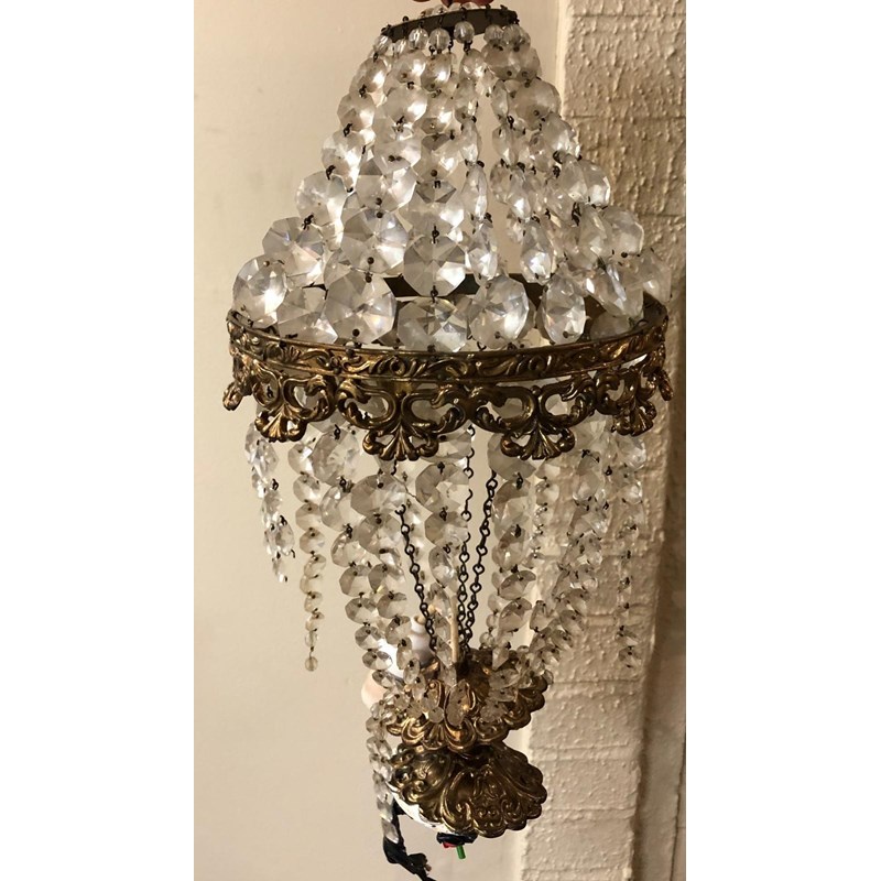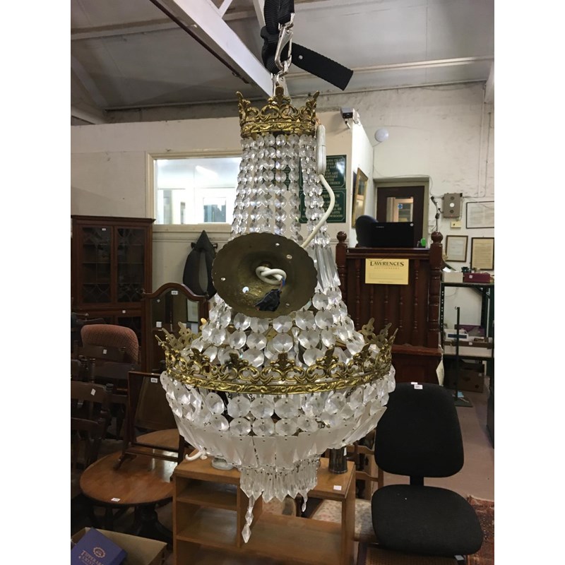 Cut Glass and Brass Bag Chandelier and Two Other Chandeliers