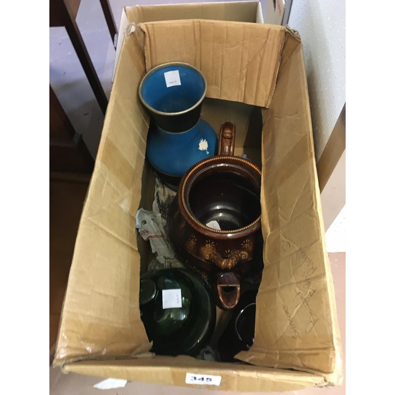 Green Glass Jar and Cover, Large Bargeware Teapot (A/F) and Others
