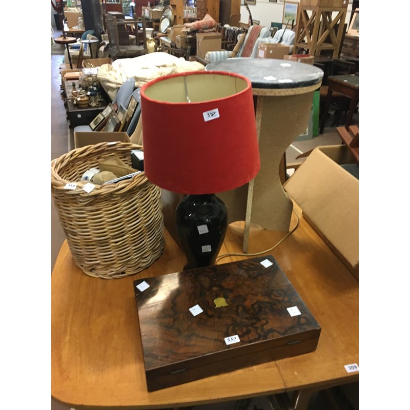 Occasional Table with Marble Top, Basket, Lamp, Box etc