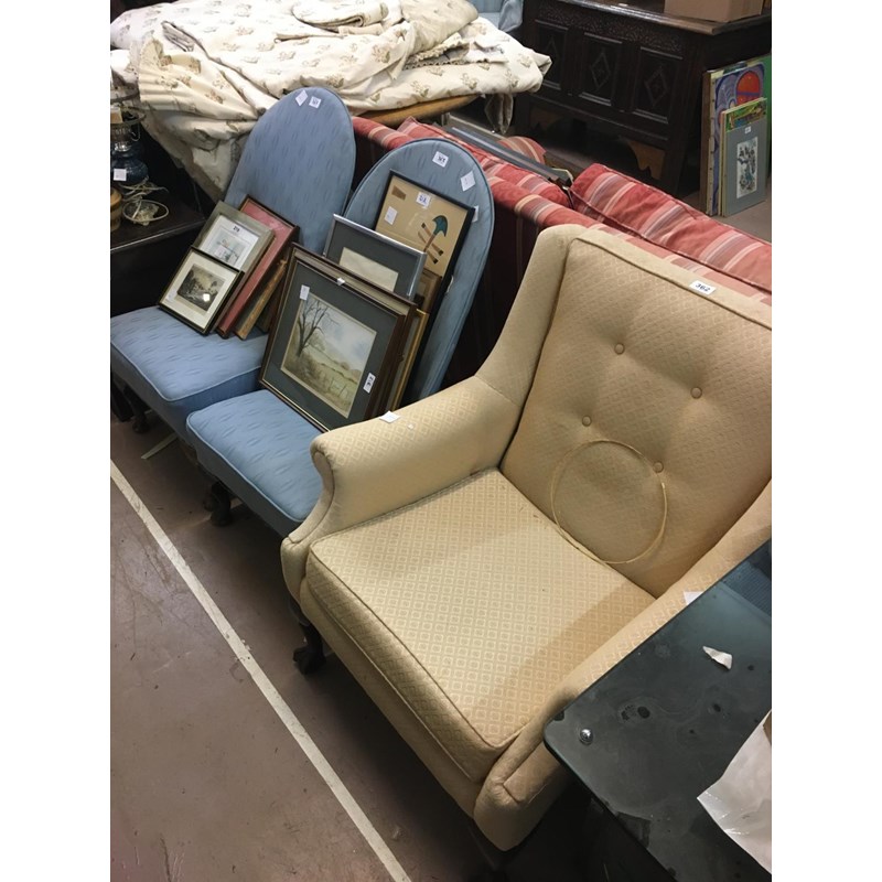 Low Beige Armchair and Two Other Upholstered Chairs (3)