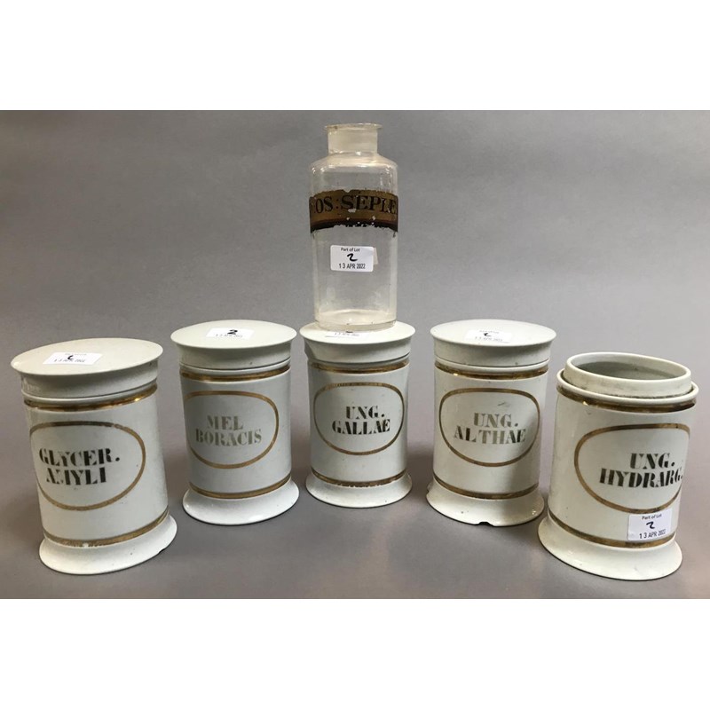 Collection of Porcelain Chemist Jars (one with missing lid)