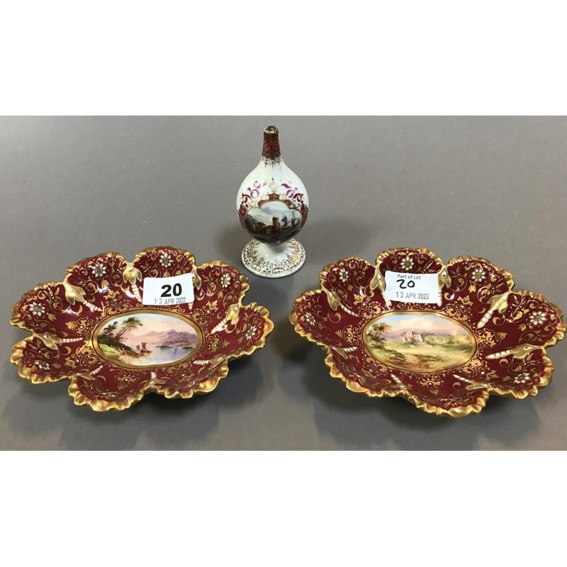 Continental Porcelain Miniature Vase with Blue Crossed Sword Marks and Two Coalport Dishes
