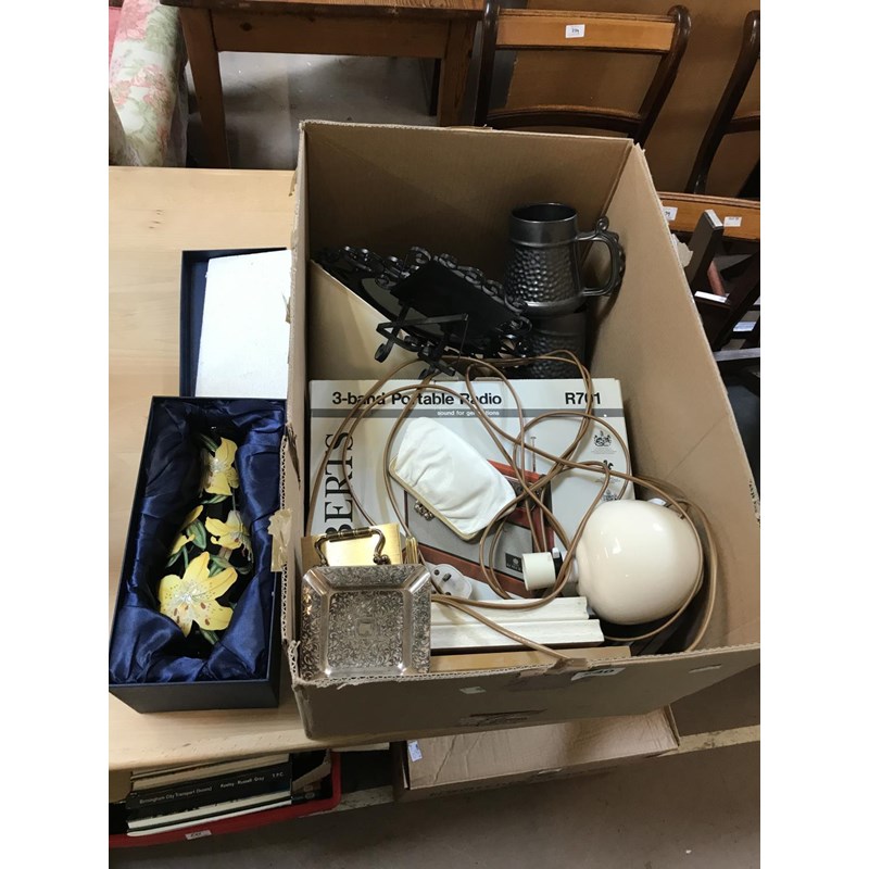 Box of Assorted Collectables to include Radio, Lamps, Jugs etc