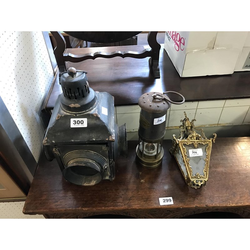 Railway Lantern, Miners Lantern and a Hanging Brass Lantern
