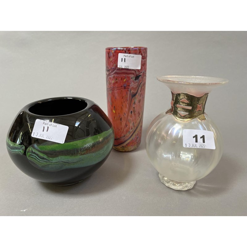 Three Art Glass Coloured Vases, Height of Tallest 19cm