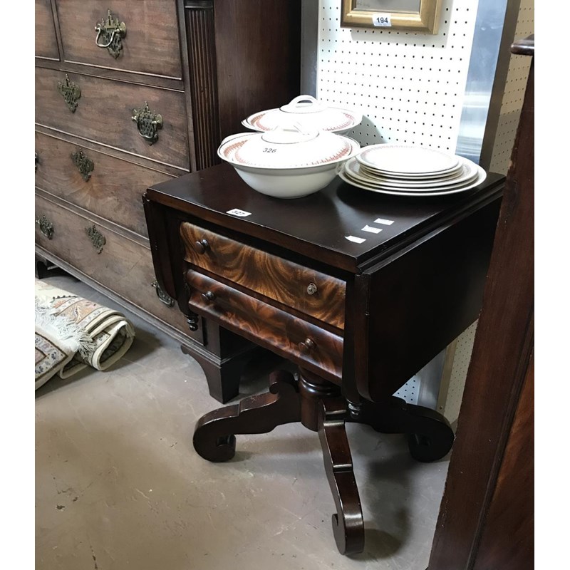 19th Century Mahogany Work Table on Scrolling Base, Height 68cm
