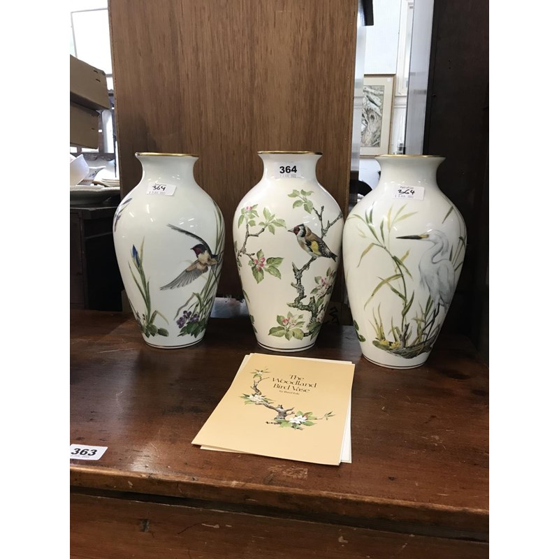 Franklin Porcelain - Three Large Bird Vases, Height 30cm
