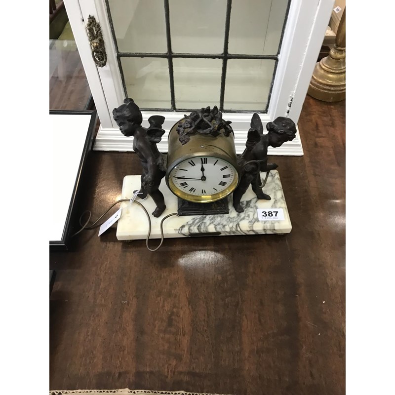French Marble Mantel Clock with Cherubs, A/F, Height 18cm