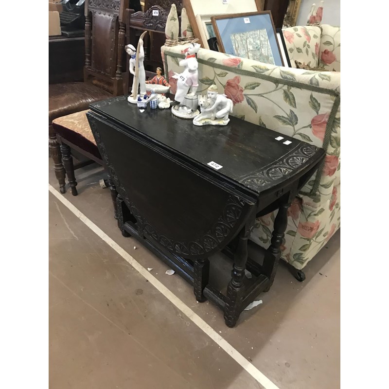 Small Carved Oak Gateleg Table with Single Drawer, Height 63cm