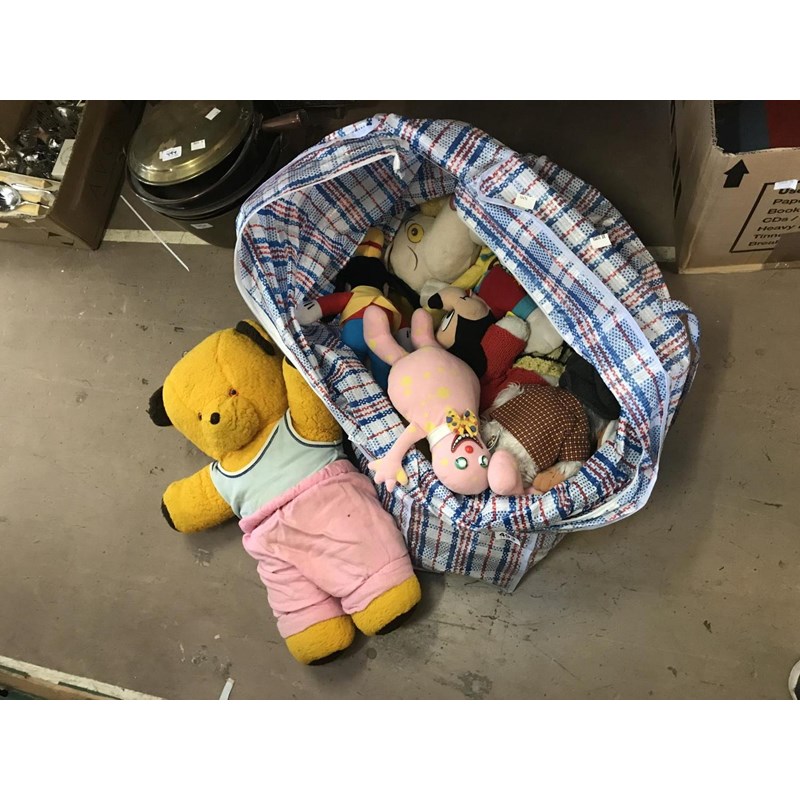 Box of Assorted Teddies, Sooty, Mr Blobby etc