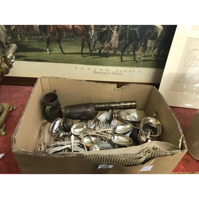Box of Assorted Plated Cutlery etc