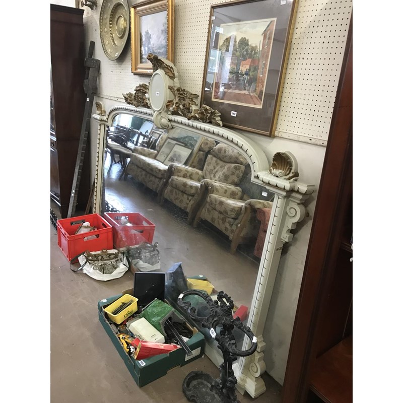Large Painted Overmantel Mirror with Acorn Leaf Surmount, H158cm, W228cm