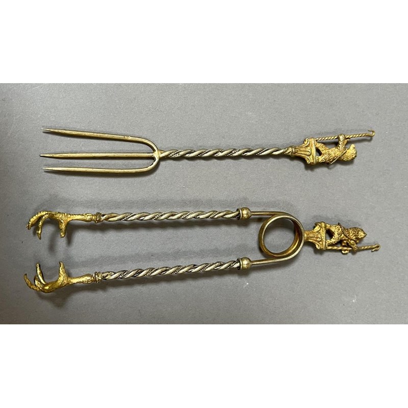 Silver Sugar Tongs and Cake Fork with Shepards Crook