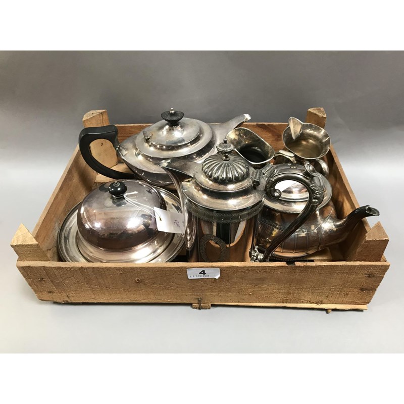 Plated Muffin Dish and Cover, a Three Piece Tea Set, etc