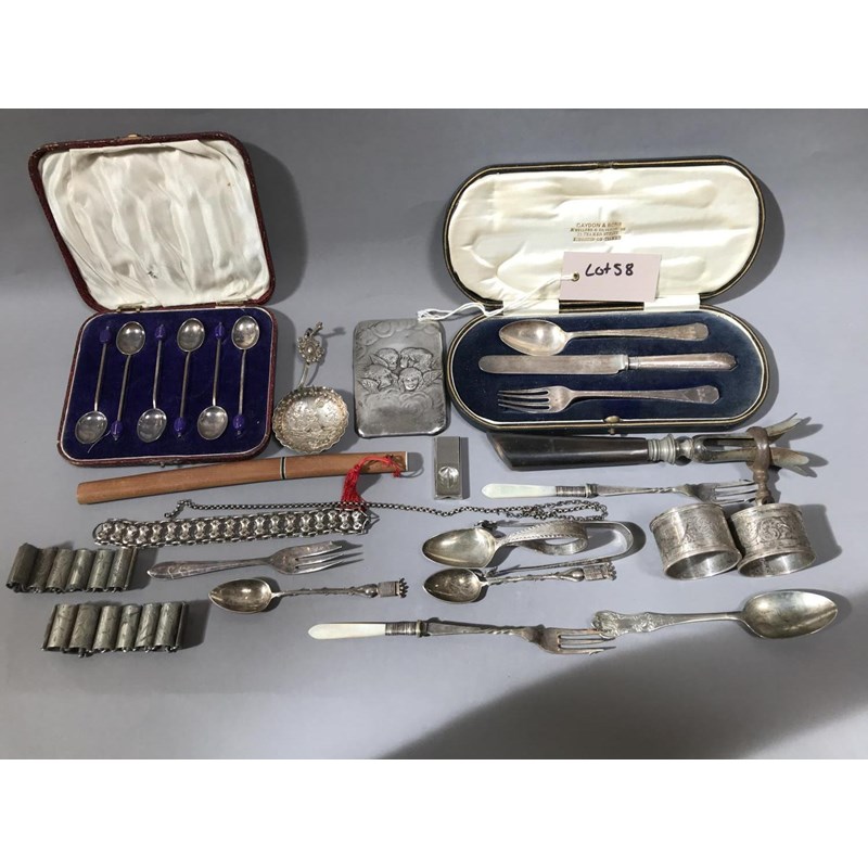 Cased Silver Christening Set, Six Bean Topped Coffee Spoons, Miscellaneous Small Silver and Plated Items