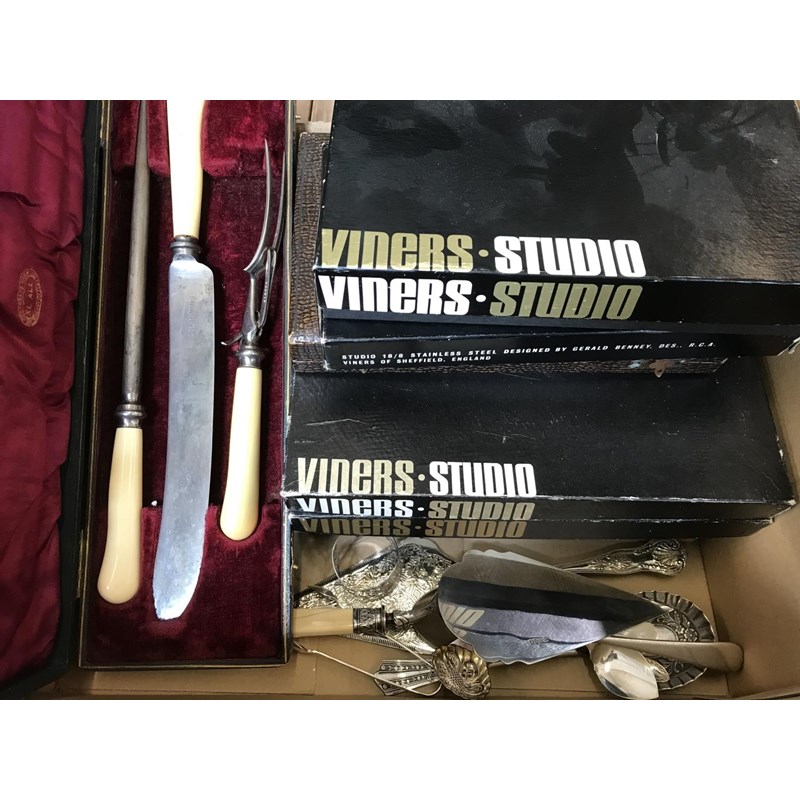 Quantity of Assorted Viners and Others, Cased Cutlery Sets and a Box of Platedware and Metalware