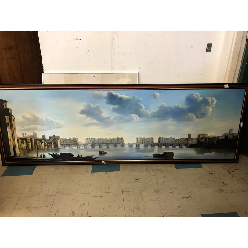 Large Modern Oil on Canvas of London Bridge, after Claude de Jongh