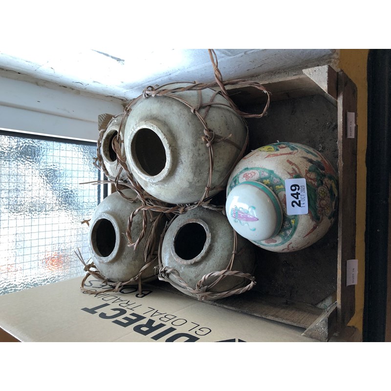 Chinese Jar and Cover and Four Other Stoneware Jars