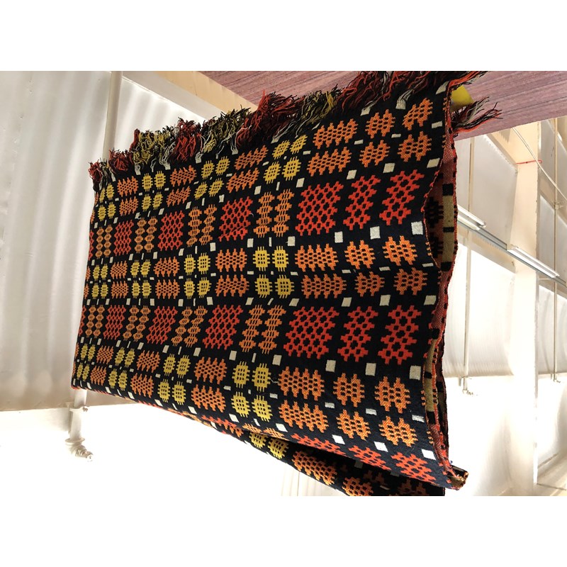 Reversible Welsh Blanket in Red, Yellow, Orange and Black