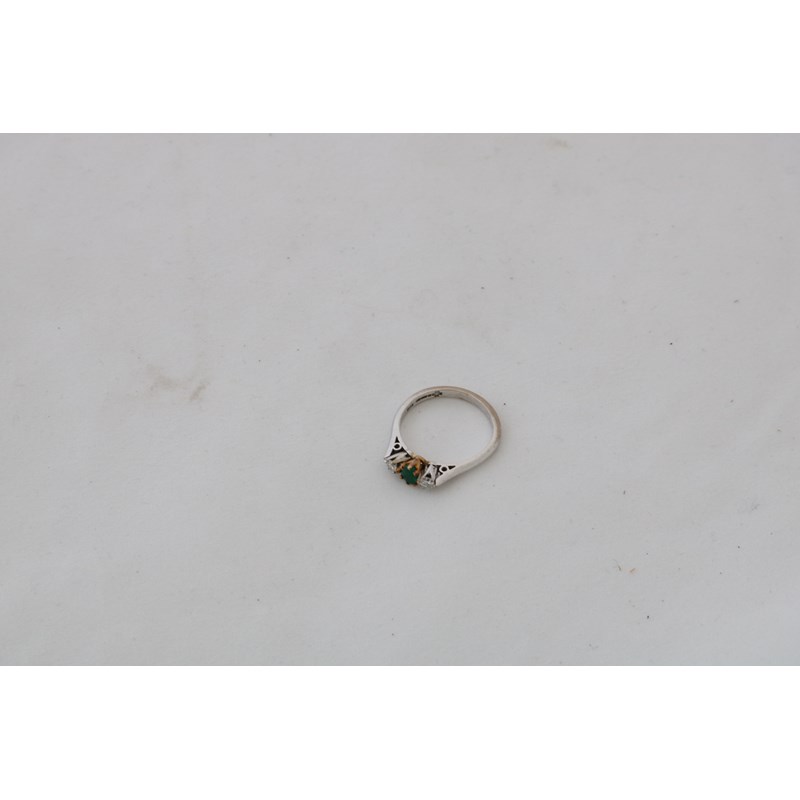 18ct White Gold Emerald and Diamond Three Stone Ring