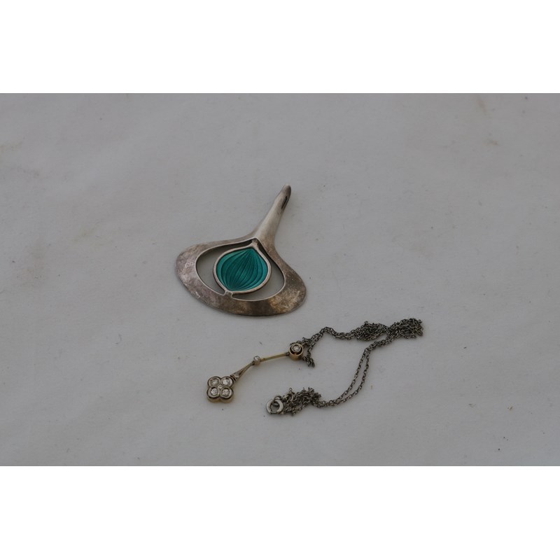 Silver and Enamel Norwegian Pendant and a Gold Pendant on Silver Chain
