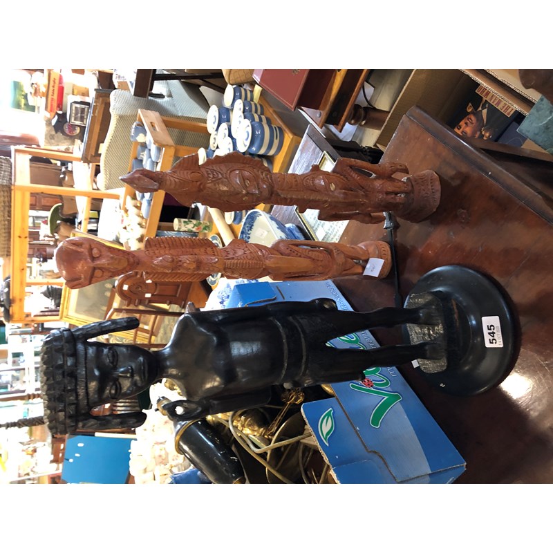 Ebony Tribal Figure and Two Papua New Guinea Carvings