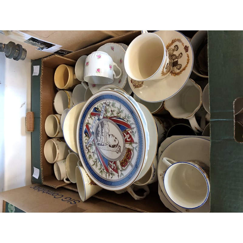 Box of Assorted Commemorative Mugs, Cups and Saucers