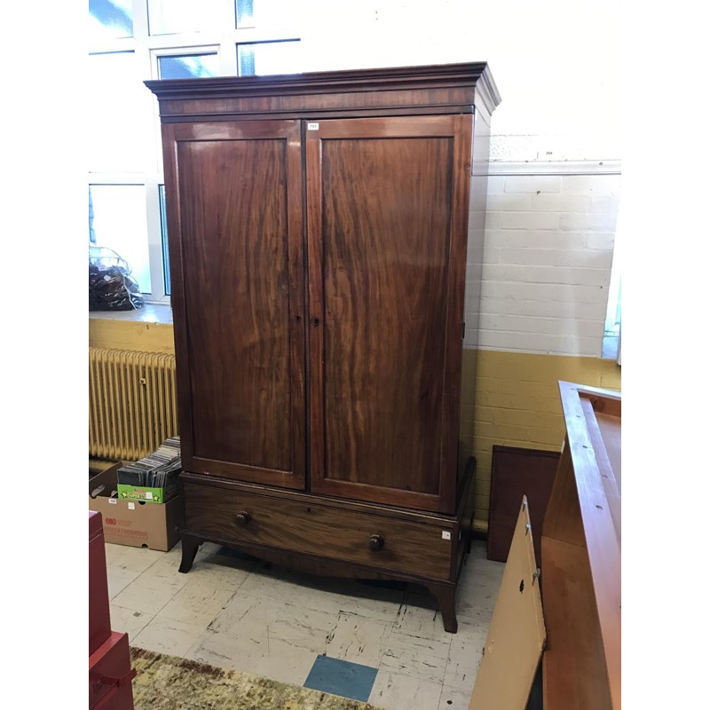 19thC Mahogany Wardrobe with Base Drawer
