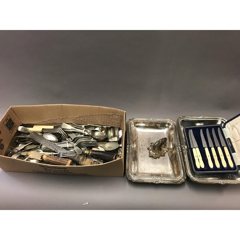 Box of Silver Plated Cutlery and a Pair of Tureens