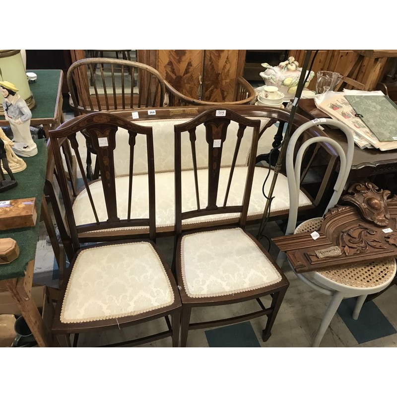 Edwardian Inlaid Salon Settee and a Pair Bedroom Chairs