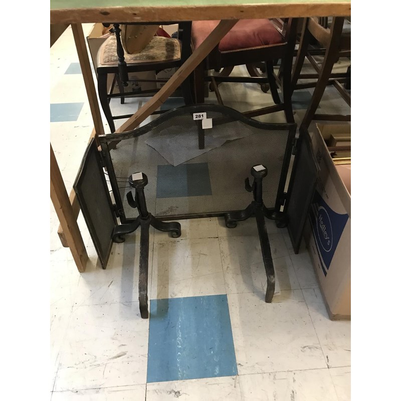 Pair of Cast Iron Fire Dogs and Spark Guard