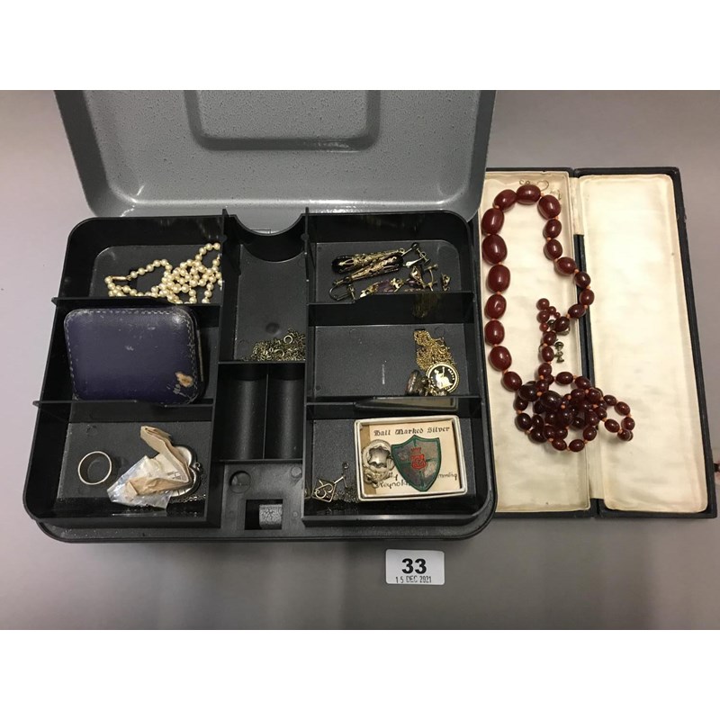 Amber Style Necklace, Silver and Enamel Medal, Earrings and Various Jewellery