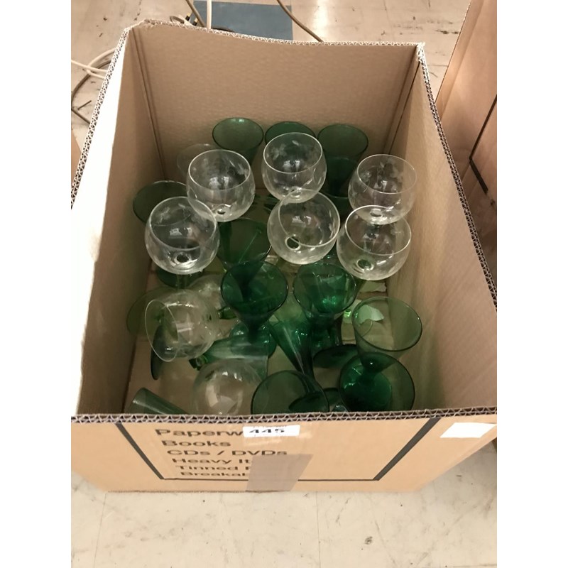 Box of Green Coloured Glassware