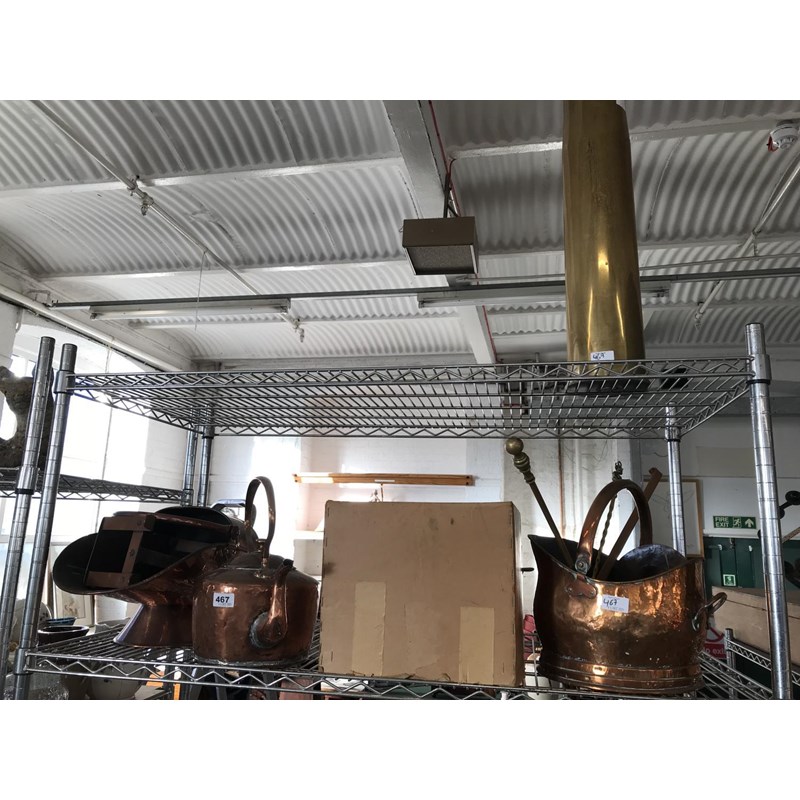 Brass Shell Case, Copper Kettle, Jardiniere, Two Coal Scuttles etc