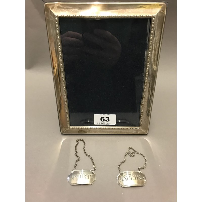 Silver Wine Labels and Silver Framed Mirror