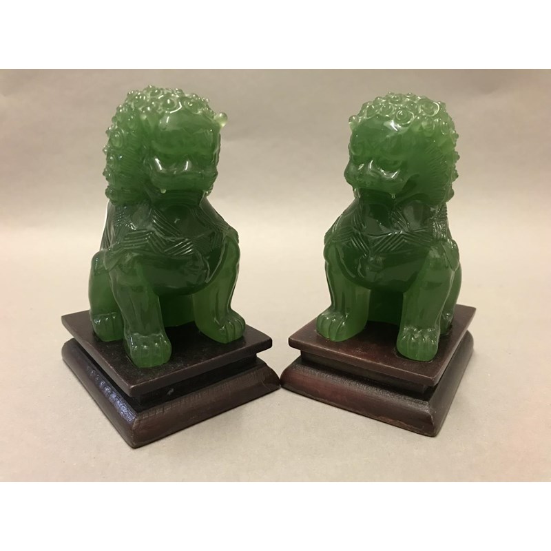 Pair of Jade Style Green Lions on Stands