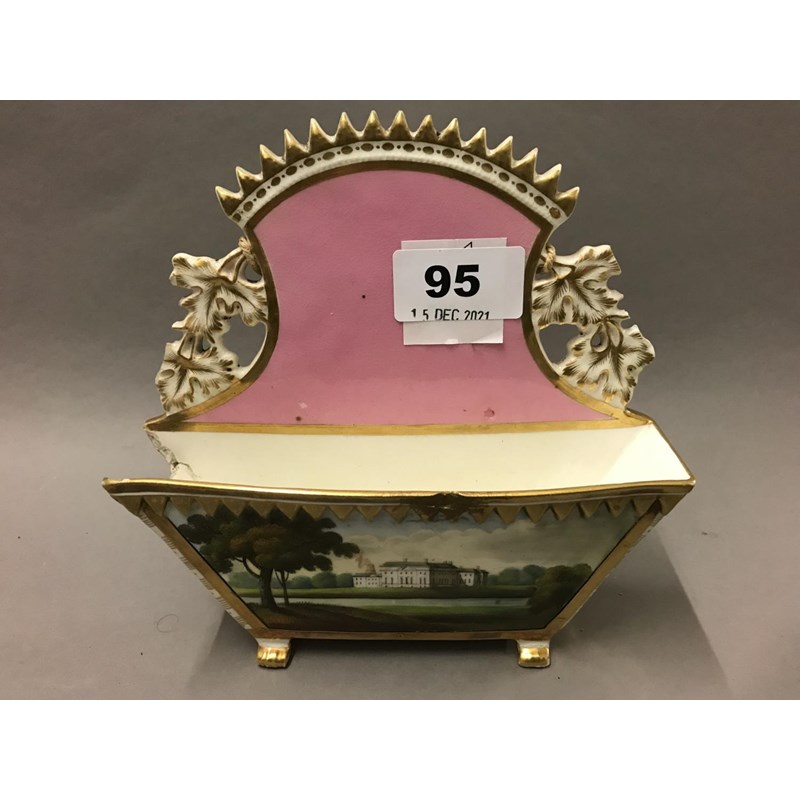 Derby Porcelain Letter Rack with Named View of Denbighshire