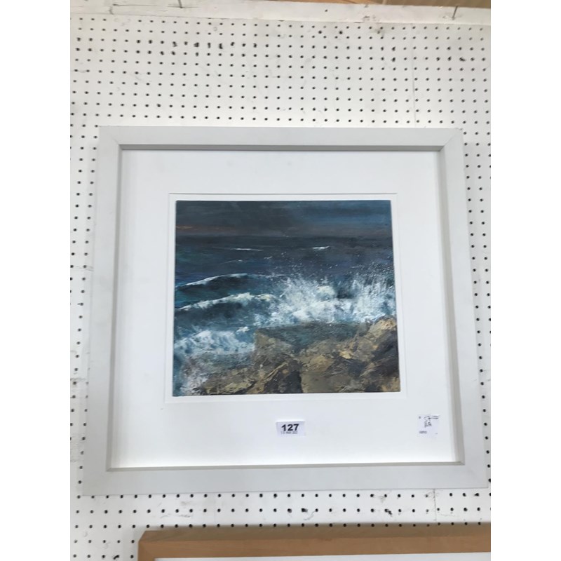 Sue Young, Crashing Surf, Signed, Acrylic on Card